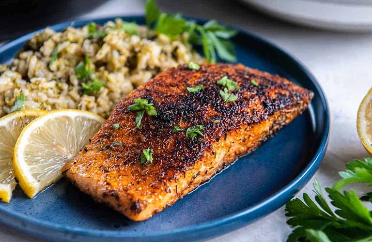 Blackened Salmon with Butter Sauce and Pilaf
